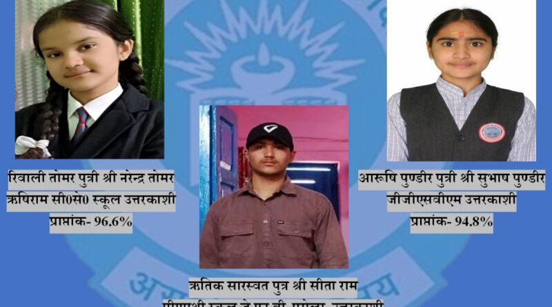 Read Moreउत्तरकाशी – उत्तरकाशी पुलिस परिवार के रिवाली तोमर(96.6%), आरूषि पुण्डीर(94.8) एवं ऋतिक सारस्वत(86.8%) द्वारा सीबीएसई 10वीं बोर्ड परीक्षा में उत्कृष्ट