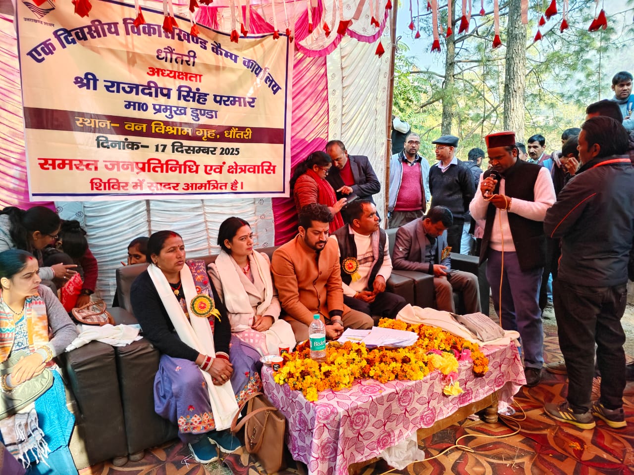 उत्तरकाशी (धौंतरी) – डुंडा ब्लॉक के गाजना धौंतरी में ब्लॉक प्रमुख राजदीप परमार की अध्यक्षता में एक दिवसीय विकासखंड कैंप कार्यालय का आयोजन किया गया। इस दौरान प्रमुख ने क्षेत्रीय ग्रामीणों की समस्याओं को सुना और मौके पर ही कई शिकायतों का निस्तारण किया। जबकि अन्य समस्याओं के निस्तारण को मौके पर मौजूद विभागीय अधिकारियों को त्वरित निस्तारण के निर्देश दिए।