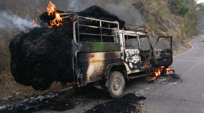पराली भरी पिकअप वाहन UK04CB-0265 में लगी आग,वाहन पूरी तरह हुआ नष्ट