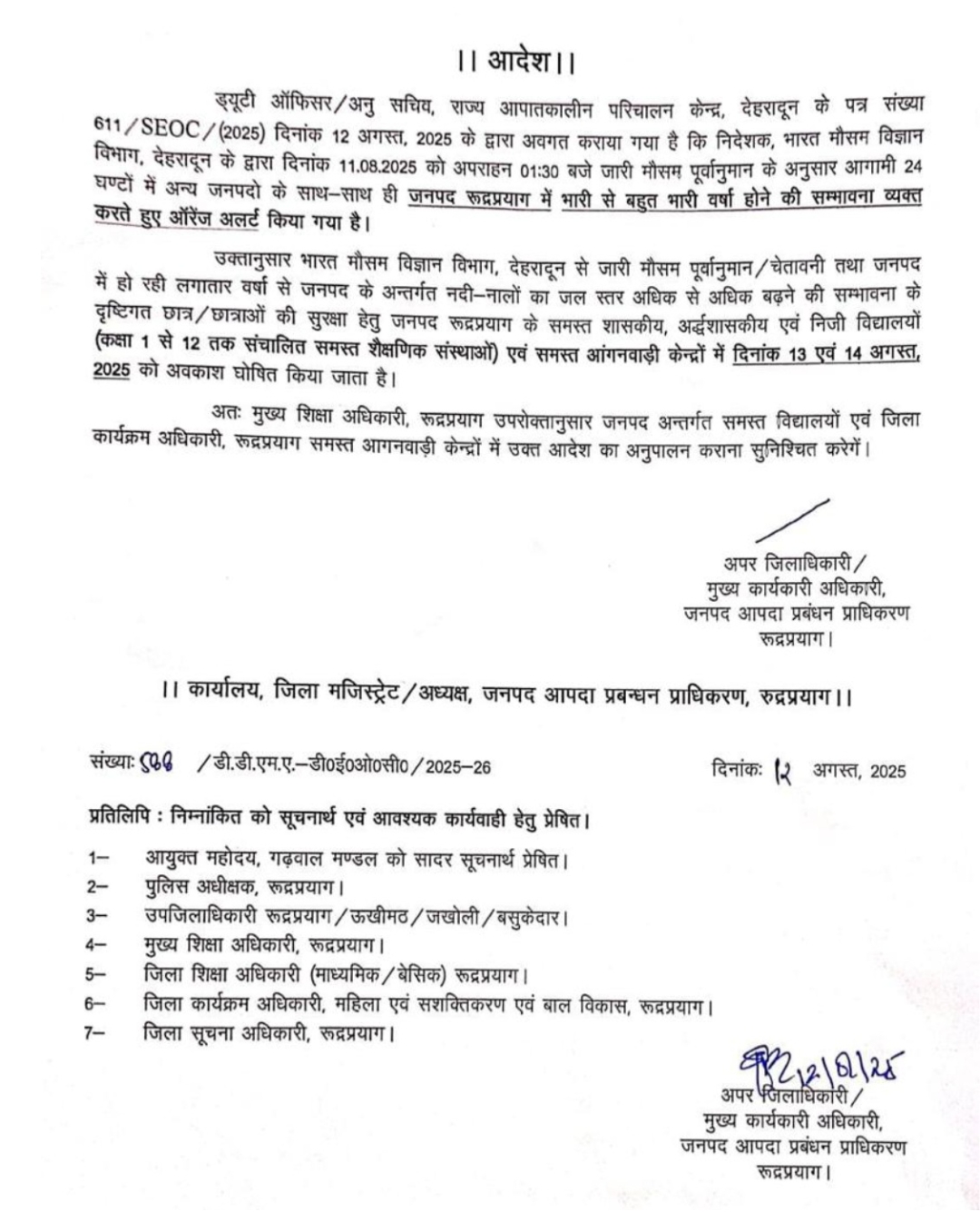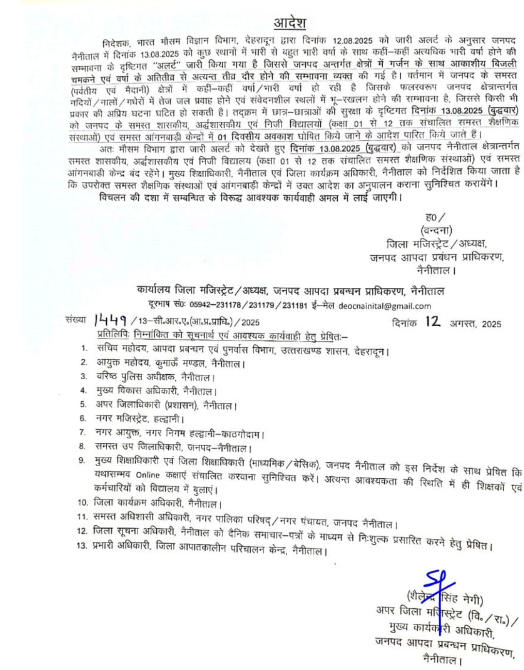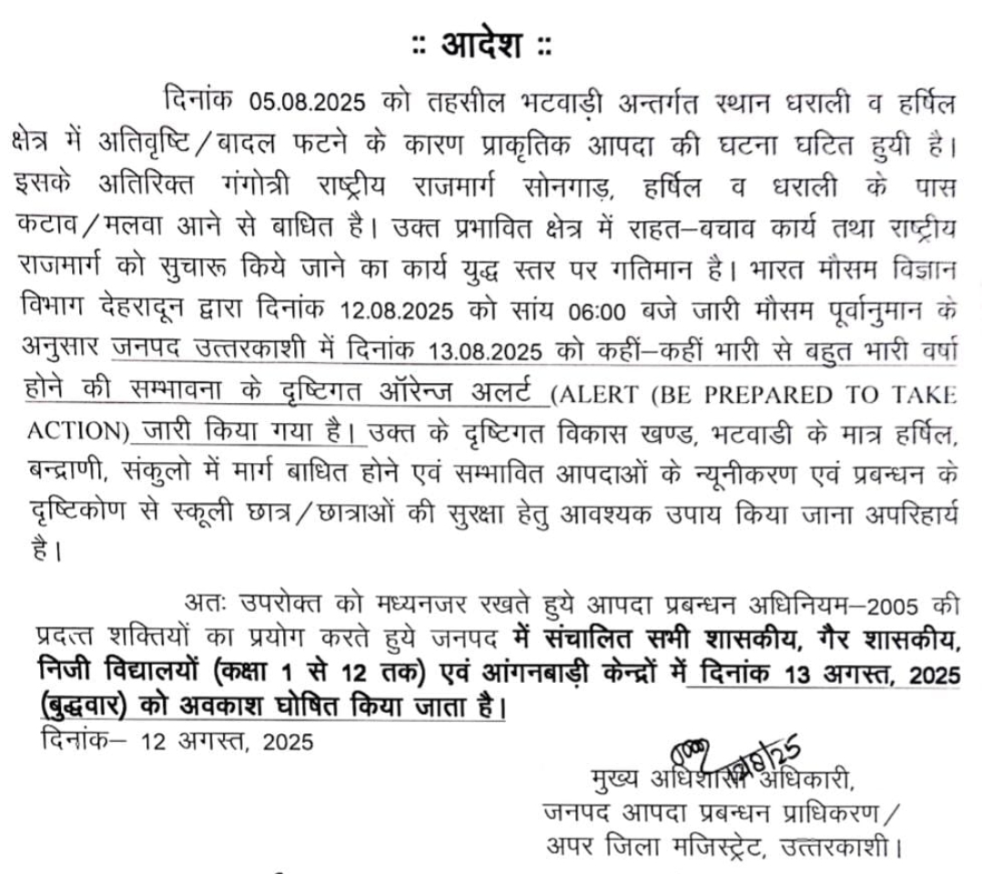 उत्तराखंड मौसम विभाग की चेतावनी के बाद कई जनपदों में स्कुलों की छुट्टी August 13, 2025August 13, 2025 Rakesh Raturi 72 Views देहरादून – मौसम विभाग ने किया अलर्ट कई जनपदों में आज छुट्टी का आदेश हुआ जारी-