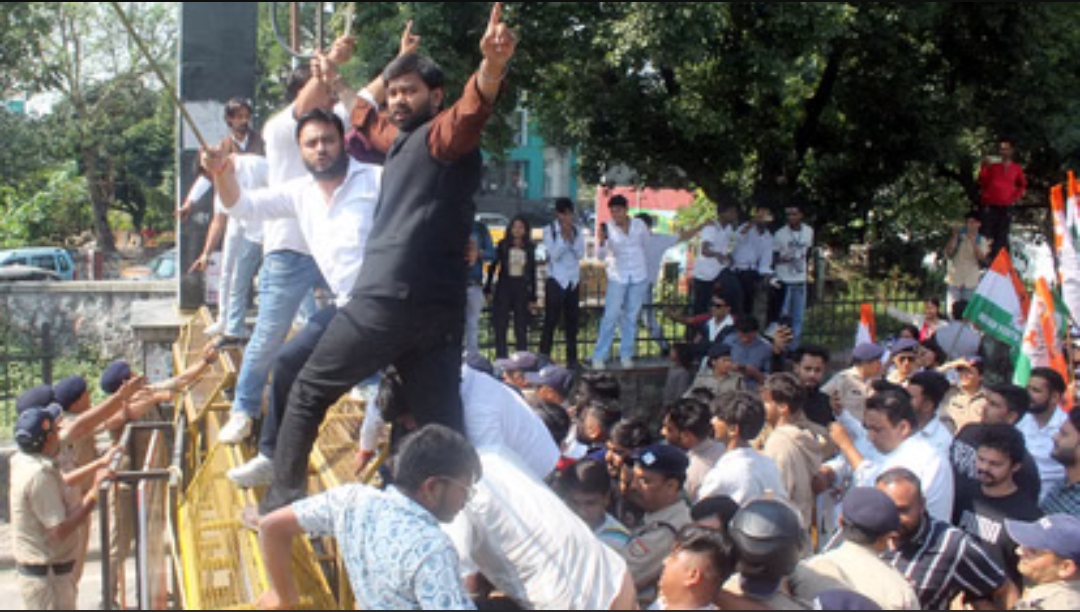 कांग्रेसियों ने राष्ट्रीय स्वयंसेवक संघ के कार्यालय का किया घेराव पुलिस ने 20 से ज्यादा कांग्रेसियों को हिरासत में लिया