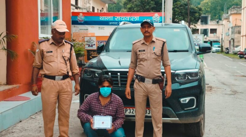 रात्रि मे थाना रायवाला पुलिस टीम द्वारा गस्त / चैकिंग के दौरान नेपाली फार्म तिराहे से तीन पानी पुलिया की ओर गोकुल धाम कट के पास एक यू0पी0-32 -क्यू0डी0 -3939 (स्कार्पियो) जो अँधेरे मे सूनसान जगह पर खडी थी तथा उक्त वाहन के शीशे पर काली फिल्म लगी हुई थी, संदिग्धता प्रतीत होने पर पुलिस द्वारा वाहन को चैक किया गया, जिसमें गाडी वैभव वर्मा पुत्र राम शंकर वर्मा बैठा था, जिसकी तलाशी लेने पर वैभव वर्मा के पास से एक अदद देशी पिस्टल बरामद हुई, अभियुक्त से देशी पिस्टल बरामद होने पर अभि0 वैभव वर्मा को गिरफ्तार करते हुए वाहन को सीज किया गया तथा अभियुक्त के विरूद थाना रायवाला में मु0अ0स0 119/25 धारा 3/25 आर्म्स एक्ट के तहत अभियोग पंजीकृत किया गया ।