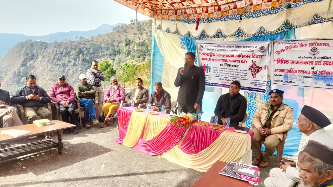 टिहरी (चम्बा) – भारतीय लोकतंत्र का प्रत्येक स्तंभ अल्पसंख्यकों के हित संरक्षण के लिए प्रतिबद्ध है जो कि सभी का संवैधानिक कर्तव्य भी है। संविधान द्वारा संरक्षित नागरिकों के मूल अधिकार भी अल्पसंख्यक हितों की गारंटी प्रदान करते है। इसके अलावा अल्पसंख्यकों को अपने धर्म, भाषा, संस्कृति आदि के पालन और प्रचार प्रसार का विशेषाधिकार भी प्राप्त है। राष्ट्रीय अल्पसंख्यक आयोग भी अल्पसंख्यक समुदाय के हित और उनके विकास के लिए कार्य करता है। किसी अल्पसंख्यक को अपने किसी अधिकार के लिए सहायता की आवश्यकता हो तो वह जिला विधिक सेवा प्राधिकरण अथवा अधिकार मित्रों से संपर्क कर सकते है। यह बातें जिला विधिक सेवा प्राधिकरण के सचिव आलोक राम त्रिपाठी ने अल्पसंख्यक अधिकार संरक्षण दिवस के अवसर पर सुनार गांव, चम्बा में आयोजित विधिक जागरूकता शिविर में कही। माननीय राज्य विधिक सेवा प्राधिकरण, नैनीताल एवं जिला विधिक सेवा प्राधिकरण के अध्यक्ष/जनपद न्यायाधीश अमित कुमार सिरोही के दिशा निर्देश में विधिक जागरूकता शिविर का आयोजन किया गया।