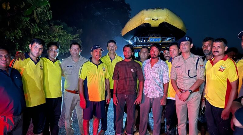 नदी में पशुओं का चारा लेने गए थे पांचो व्यक्ति फँसे नदी में एसडीआरएफ ने निकाले