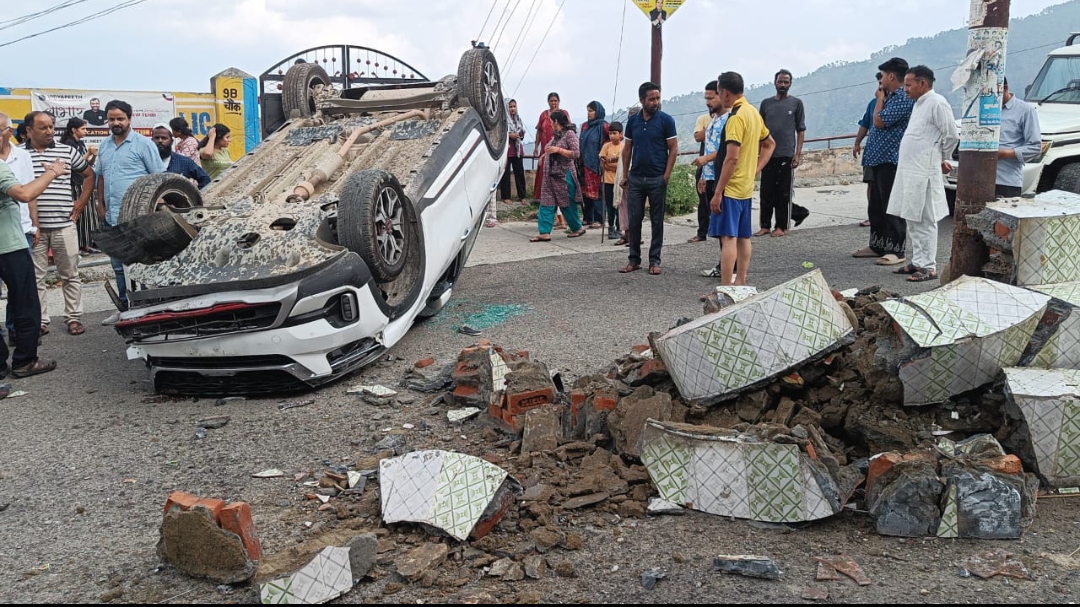 नई टिहरी के 9B चौक पर कार दुर्घटना में बाल बाल बच्चे पति-पत्नी और 2 साल का बच्चा