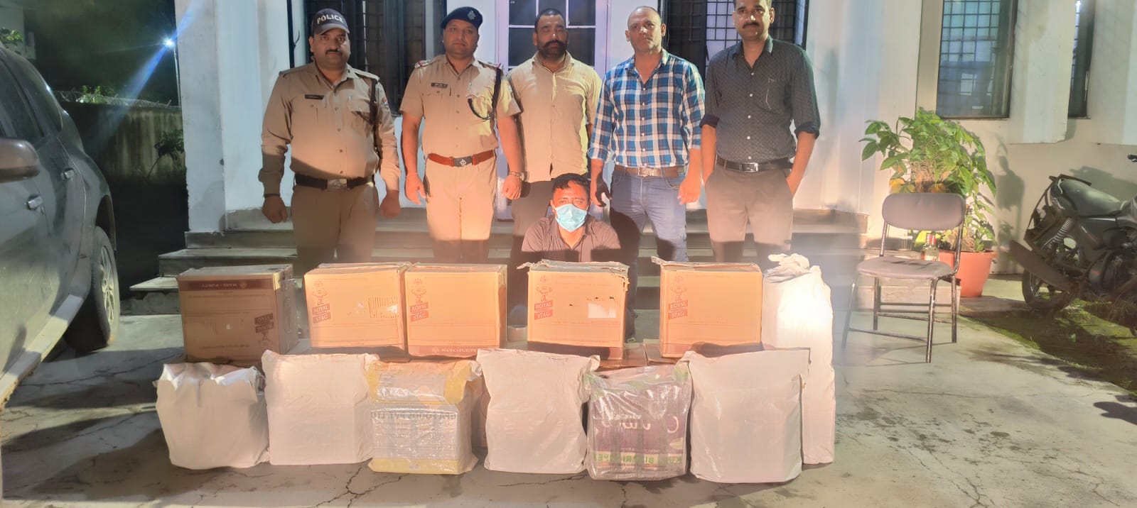 उत्तराखंड एसटीएफ द्वारा आशारोड़ी चेकिंग बैरियर पर एक कार से बरामद की गई 322 बोतल हरियाणा मार्का रॉयल स्टेज शराब
