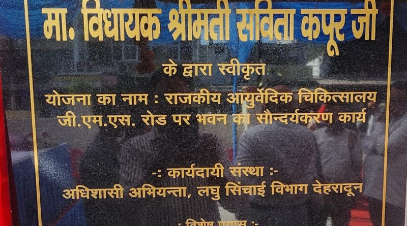 देहरादून – विधायक कैंट सविता कपूर ने आयुष्मान आरोग्य मंदिर (आयुष), राजकीय आयुर्वेदिक चिकित्सालय, निरंजनपुर के सौंदर्यकृत भवन का उद्घाटन किया गया। इस अवसर पर विधायक ने कहा कि सरकार आमजन को बेहतर स्वास्थ्य सुविधाएँ उपलब्ध कराने के लिए निरंतर प्रयासरत है। इस मौके पर जिला आयुर्वेदिक एवं यूनानी अधिकारी ने मा0 विधायक को पंचायत भवन में संचालित चिकित्सालय भवन को आयुष विभाग को हस्तांतरित करने का प्रस्ताव भी रखा। इस पर विधायक ने पूर्ण आश्वासन दिया गया।