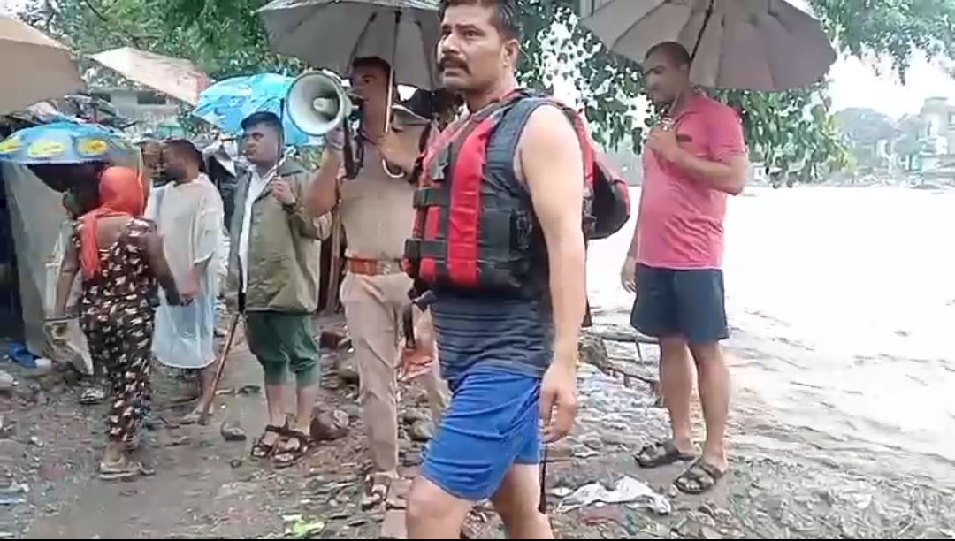 देहरादून – रात्री से देहरादून व पहाड़ी जनपदों में लगातार हो रही भारी बारिश एवं मौसम विभाग द्वारा जारी किए गए लगातार भारी बारिश के अलर्ट के दृष्टिगत नदी- नालों के बढ़ते जलस्तर को देखते हुए पुलिस द्वारा ऋषिकेश क्षेत्र में गंगा घाटों पर स्नान करने वाले श्रद्धालुओं को नदी किनारे सुरक्षित रूप से स्नान करने तथा नदी के बीच में ना जाने के लिए लगातार अलर्ट किया जा रहा है।