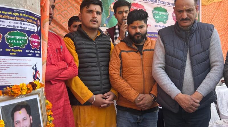 उत्तरकाशी – उत्तरकाशी के ऐतिहासिक रामलीला मैदान में मंगलवार को स्वर्गीय सौरभ भट्ट की पुण्य स्मृति में सौरभ फाउंडेशन द्वारा आयोजित प्रथम सौरभ मेमोरियल क्रिकेट टूर्नामेंट 2026 का भव्य और गरिमामय शुभारंभ हुआ। “नशे को ना, खेल/जिंदगी को हां” की प्रेरणादायक थीम के साथ शुरू हुए इस टूर्नामेंट ने युवाओं में खेल भावना और नशामुक्त समाज का मजबूत संदेश दिया।