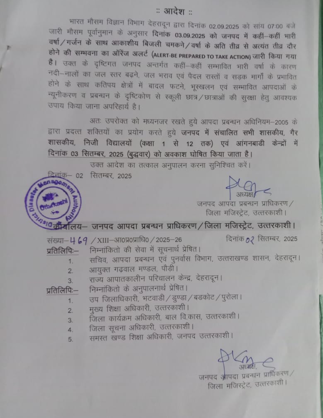 उत्तराखंड जनपद उत्तरकाशी में लगातार बारिश के कारण स्कूलों में छुटी September 3, 2025September 3, 2025 Rakesh Raturi 88 Views उत्तरकाशी – जनपद उत्तरकाशी में लगातार बारिश के कारण स्कूलों में कक्षा 1 से 12 तक अवकाश घोषित कर दिया है