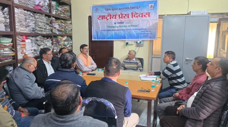 देहरादून –  राष्ट्रीय प्रेस दिवस के अवसर पर जिला सूचना कार्यालय, देहरादून में वरिष्ठ पत्रकर वीडी शर्मा की अध्यक्षता में “बढ़ती भ्रामक सूचनाओं के बीच प्रेस की विश्वसनीयता का संरक्षण” थीम पर एक विचार गोष्ठी का आयोजन किया गया। गोष्ठी का संचालन अतिरिक्त जिला सूचना अधिकारी रवेन्द्र सिंह ने किया।