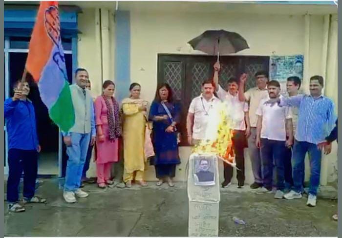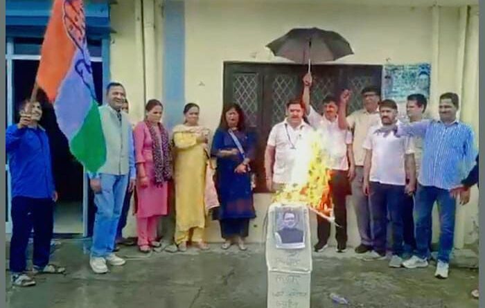 मसूरी स्थित जॉर्ज एवरेस्ट भूमि घोटाले के विरोध में टिहरी कांग्रेस ने किया राज्य सरकार का पुतला दहन