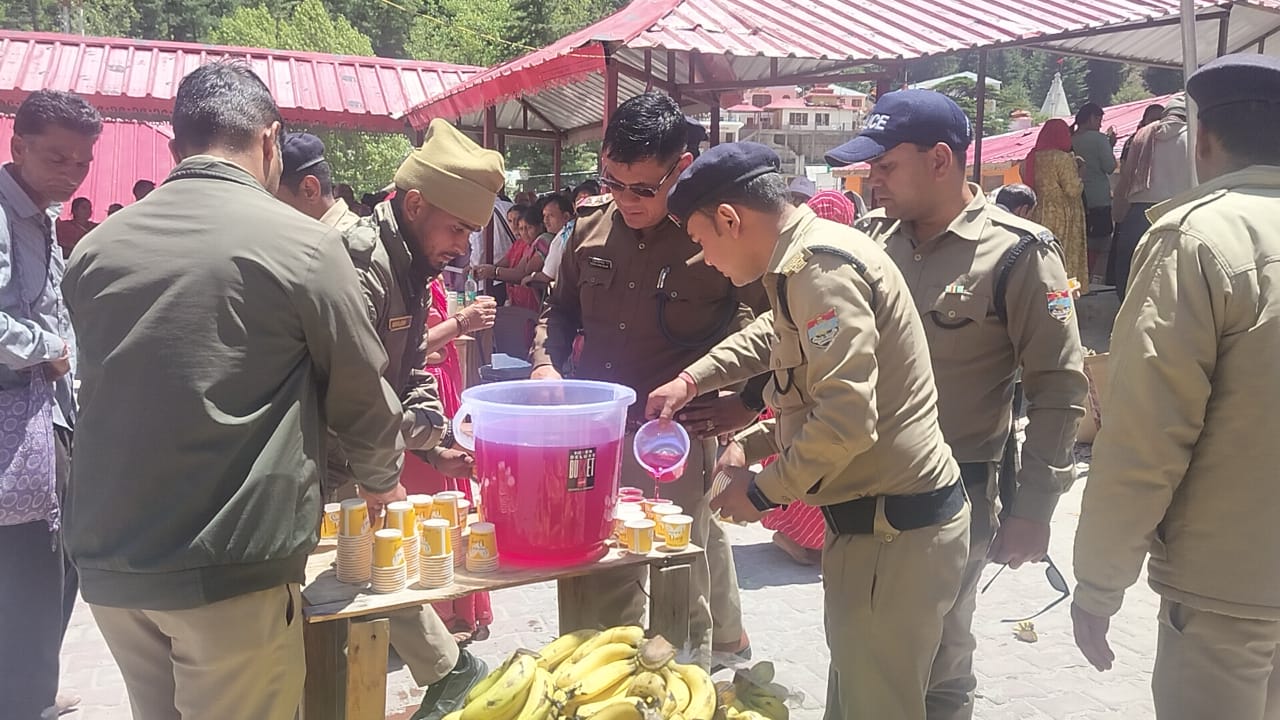 गंगोत्री धाम पर उत्तरकाशी पुलिस ने तीर्थयात्रियों को फलाहार व जूस वितरित कर किया स्वागत